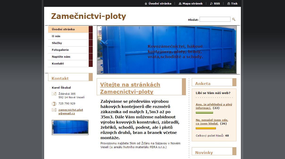 Zámečnictví Karel Škubal - Kovové konstrukce, hákové kontejnery, ploty, brány, vrata a schodiště